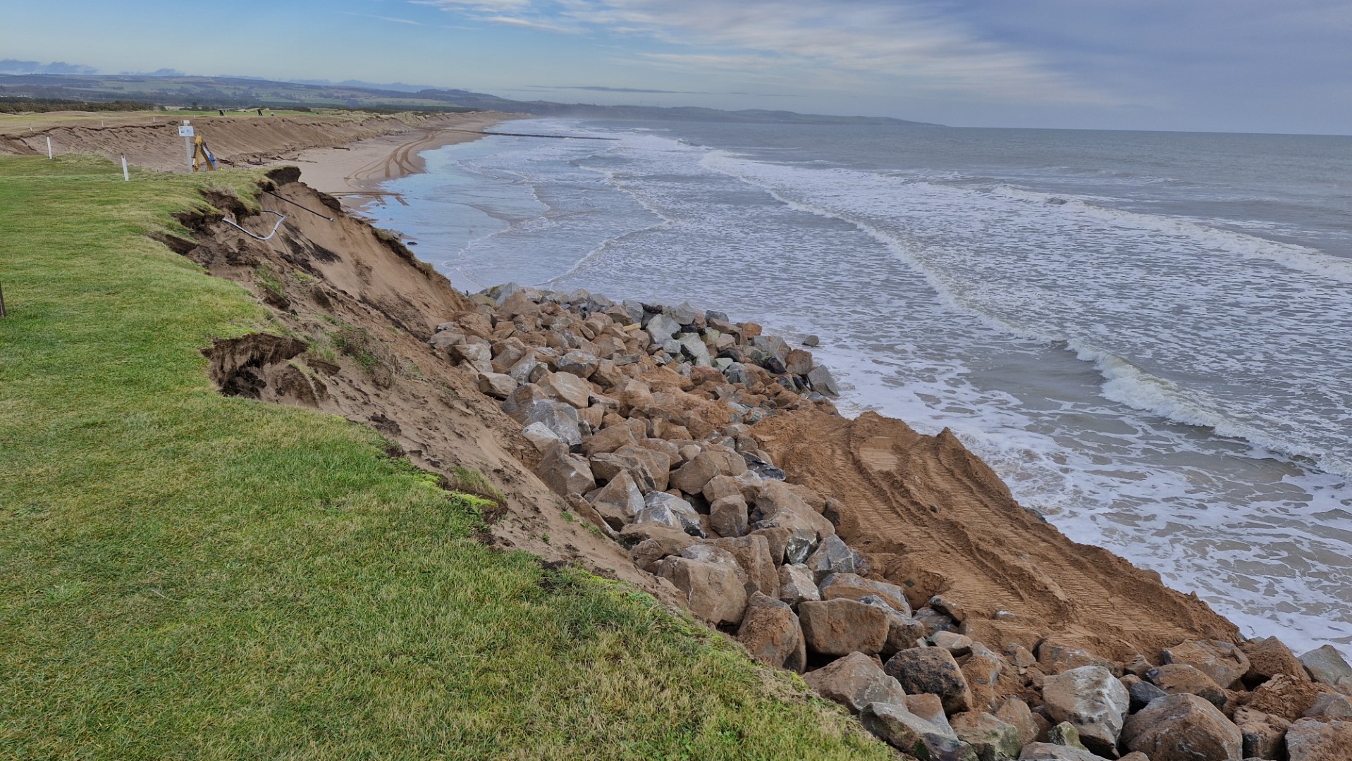 The shoreline along the links is subject to high wave energy. This is likely to undermine any fixed hard engineered solutions. Piled solutions would be extremely costly.